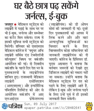 10 Jul All Posts, Clippings Technic ke Yug mein e-Library ko Apnana Jaroori (Dainik Navjyoti, Sunday, 9th July 2017) April 13, 2023 By admin Continue reading