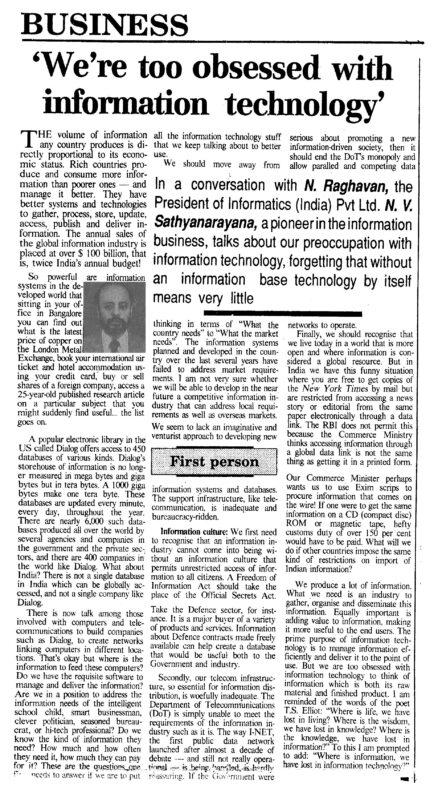 We’re too obsessed with information technology (Deccan Herald, 13th January 1992)